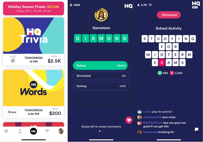 HQ Trivia lanza HQ Words como CEO reinstalado busca un cambio de juego - TechCrunch
