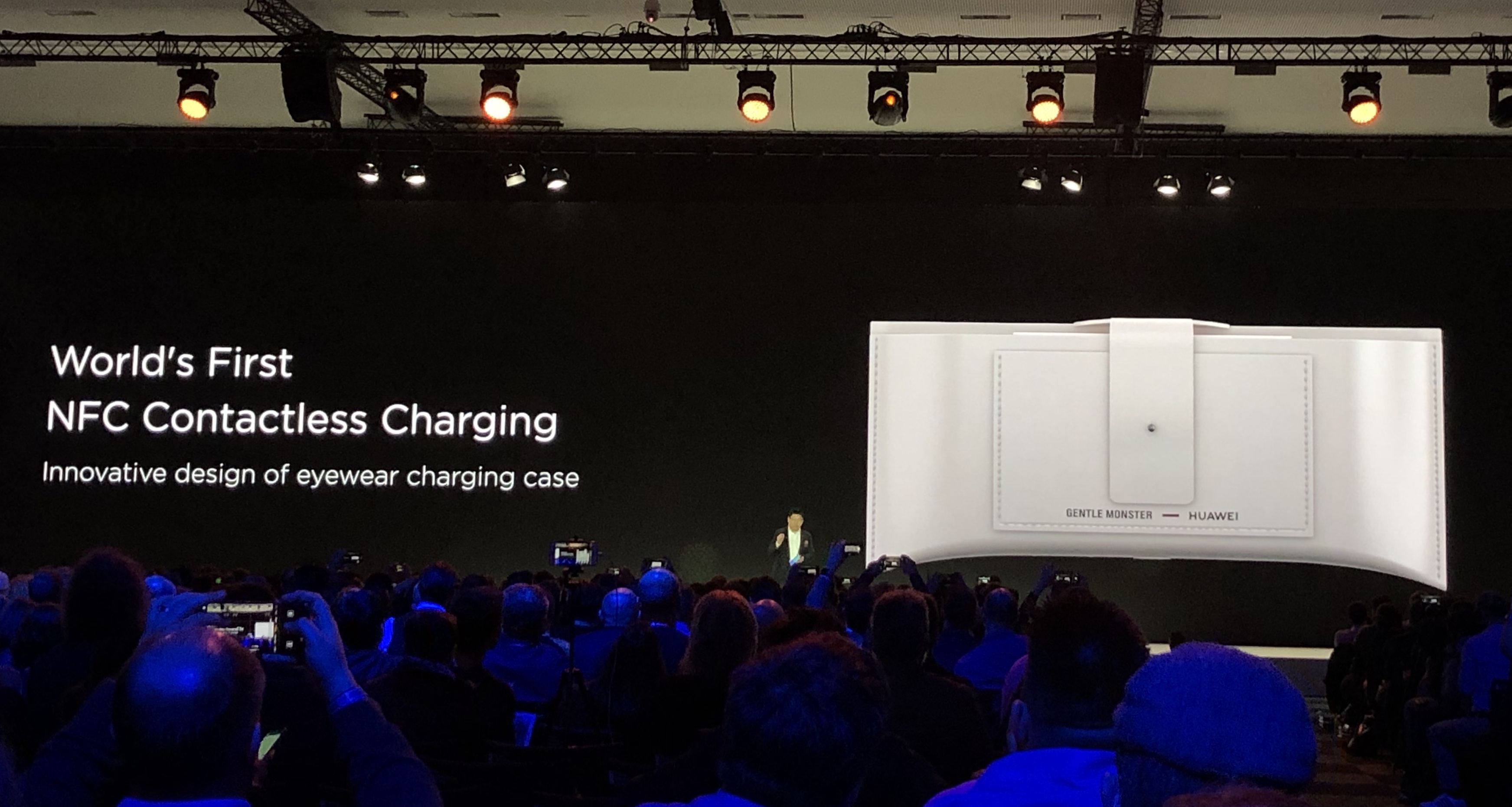 Las gafas vienen en una funda de cuero con puerto USB-C en la parte inferior. Cuenta con carga inalámbrica también. Huawei se burló de las gafas en la conferencia de prensa P30 en París, pero las gafas no estarán disponibles antes de julio de 2019.