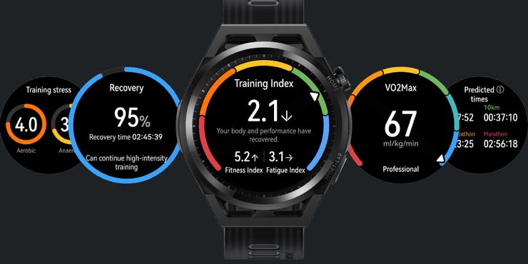El Watch GT Runner también tiene un sensor de SpO2 para rastrear los niveles de oxígeno en la sangre, almacenamiento integrado para archivos de audio y un altavoz para que los usuarios puedan recibir llamadas en el reloj. El Forerunner 55 pierde un sensor de SpO2 pero puede rastrear la respiración y los niveles de energía. Además, no tiene almacenamiento incorporado, pero puede controlar la reproducción de música en un dispositivo conectado. En términos de funciones de ejecución, el reloj de Huawei ofrece un puñado. El índice de capacidad de carrera evalúa con precisión la capacidad de carrera de un usuario en función de la frecuencia cardíaca, el ritmo y la distancia de carrera. Training Load también está disponible en Garmin Forerunner 55, que ayuda a los usuarios a determinar el volumen de entrenamiento adecuado y el tiempo necesario para descansar. Huawei ha agregado un entrenador de carrera de inteligencia artificial que analiza los datos de entrenamiento semanales y los usa para ajustar automáticamente los horarios de carrera para la semana siguiente. El entrenador también personaliza los planes de entrenamiento en función del género, la altura y el peso.