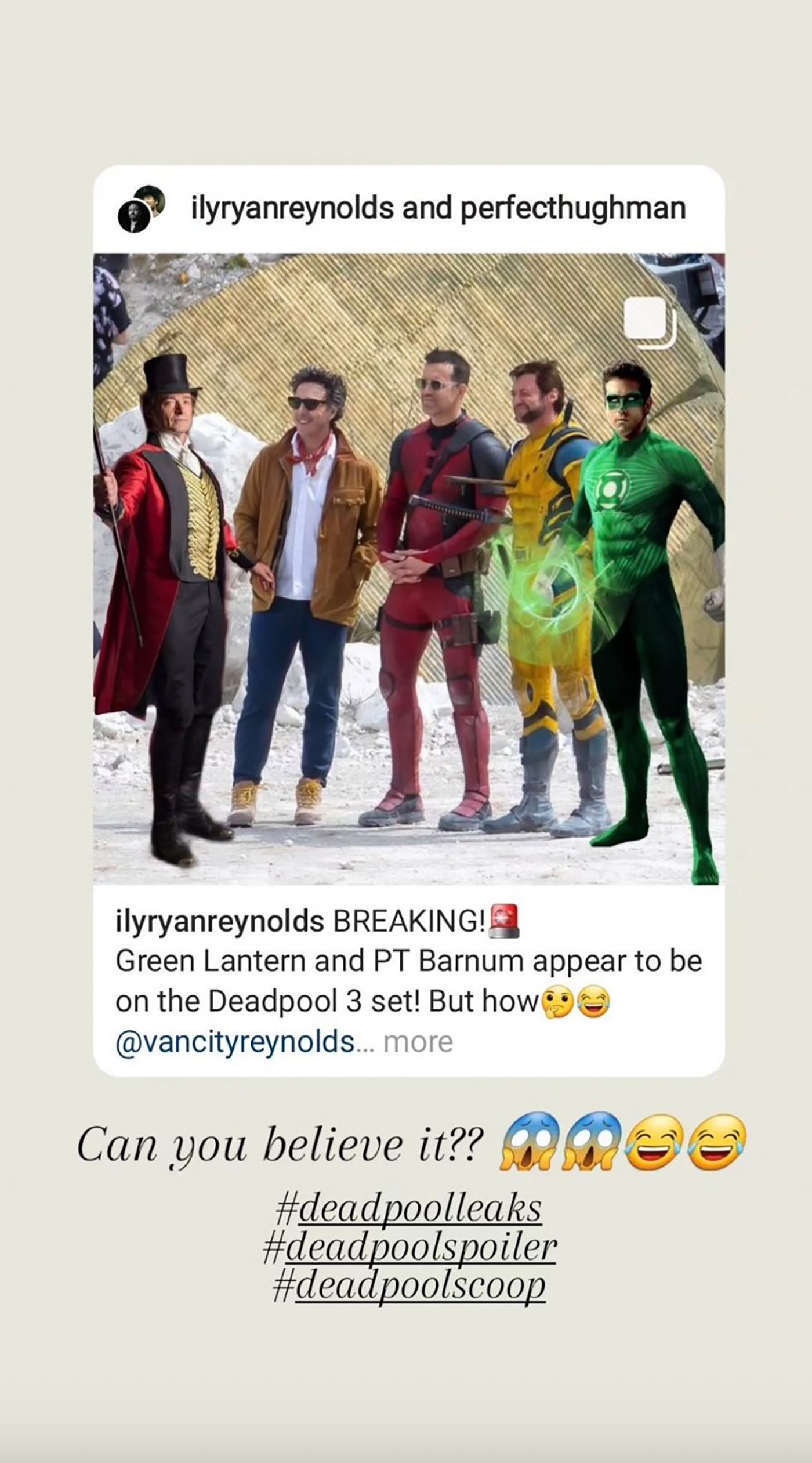 “/> Jackman compartió una publicación de su compañero usuario de Instagram @ilyryanreynolds, que edita con humor su personaje PT Barnum de El mejor showman junto a Levy, así como la versión de Reynolds de Green Lantern junto a Jackman. El actor mantuvo la diversión con una leyenda que decía “¿¿Puedes creerlo??“, con múltiples emojis de sorpresa que reaccionan a los cameos falsos del multiverso.