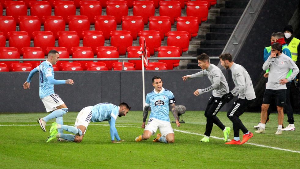 Denis, en plena avalancha viguesa, batió a Unai Simón, pero su gol fue anulado por fuera de juego previo de Aspas. El 0-1, sin embargo, no tardó mucho más en subir al marcador. Hugo Mallo, de cabeza, culminó una gran jugada de los visitantes a la hora de juego.