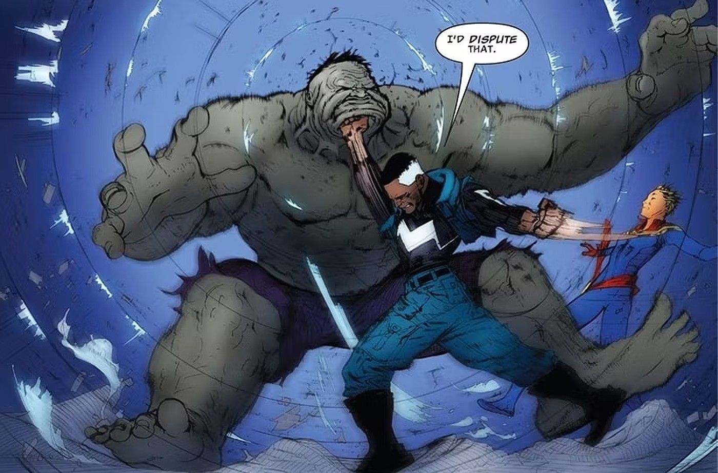 Este ámbito puso a los Ultimates en conflicto con el Maker, Reed Richards of Earth-1610, también conocido como Ultimate Universe, quien convocó a otros seres de su universo como sus soldados de infantería, incluido Ultimate Hulk. Si bien este Hulk no es necesariamente tan poderoso como el Hulk convencional, él hizo defenderse de él en Brian Michael Bendis y Mark Bagley’s Fin último # 2, haciendo que la hazaña de Blue Marvel sea absurdamente impresionante. Más que simplemente vencerlo, Blue Marvel limpió el piso con Ultimate Hulk en un instante, algo que ni siquiera el Hulk original pudo hacer en su pelea cruzada.