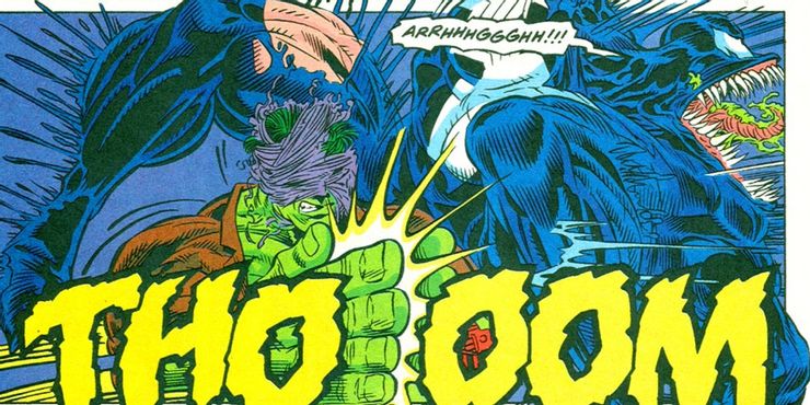 En 1994 El Increíble Hulk vs Venom # 1, el problema se desarrolla exactamente como lo describe el título. Hulk y Venom llegan a un punto muerto que solo la violencia incondicional puede resolver, pero Venom no sabe en qué se encuentra cuando desafía al gran bruto verde de Marvel. El movimiento que Hulk usó para derribar a Venom, uno que funcionaría en cualquier simbionte, fue su famoso trueno. Las ondas sónicas enviaron al simbionte Venom a un frenesí, neutralizando al antihéroe.