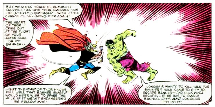 Hulk y Thor comenzaron su rivalidad en 1963, y todavía está tan presente como siempre en los cómics de hoy. Los fanáticos pueden leer la primera confrontación entre Hulk y Thor en Stan Lee y Jack Kirby’s Vengadores #2. Thor comenta cómo encuentra grotesca la apariencia de Hulk, y Hulk amenaza con “¡Arráncalo a Asgard para siempre!” Continuarían su racha de batallas en muchas de las series de Lee y Kirby en los años 60, desde Viaje al misterio a Cuatro Fantásticos.
