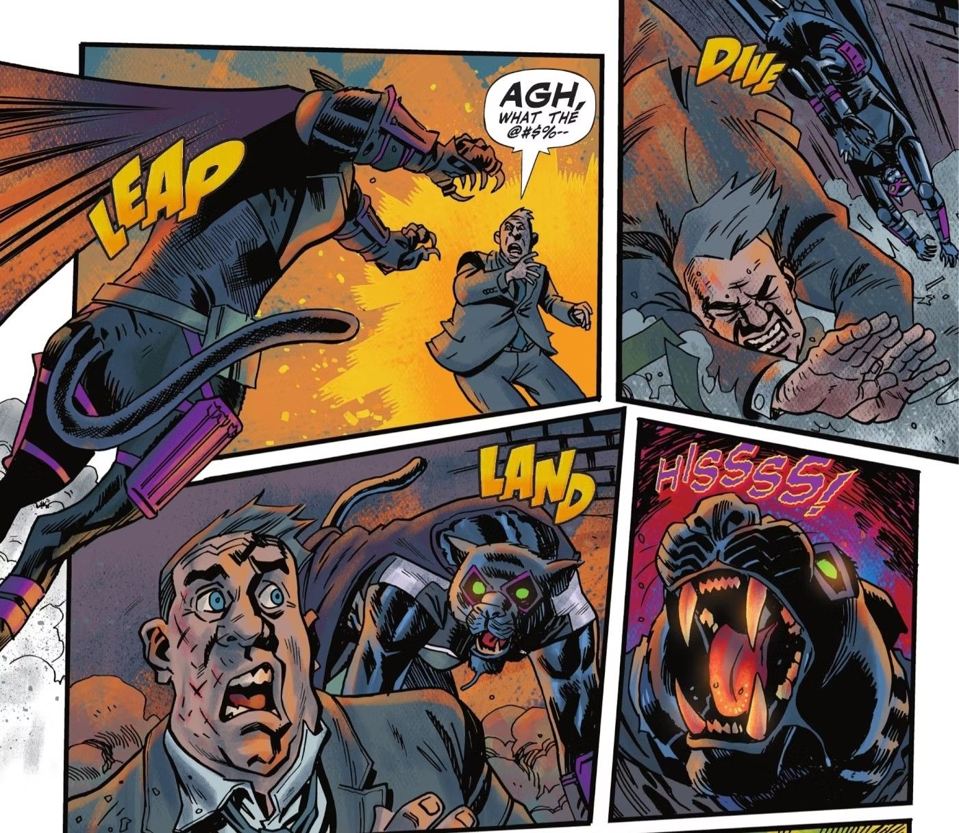 “/> Aún impulsada por sus instintos básicos, en lugar de salir corriendo inmediatamente y causar el caos, continúa atacando al funcionario de la ciudad, casi matándolo antes de que Batgirl Cass Cain se ocupe de la situación. Si bien Helena suele ser un miembro olvidado de la Bat-Familia, nadie podrá olvidar esta nueva forma de pantera que la complementa tan bien.
