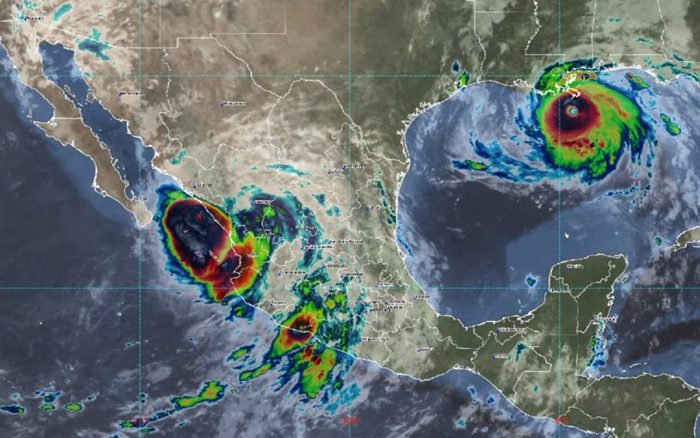 Por su parte, la Comisión Nacional del Agua (Conagua) señaló que ‘Nora’ presenta vientos máximos sostenidos de 120 kilómetros por hora (km/h), rachas de 150 km/h y desplazamiento hacia el norte a 19 km/h.
