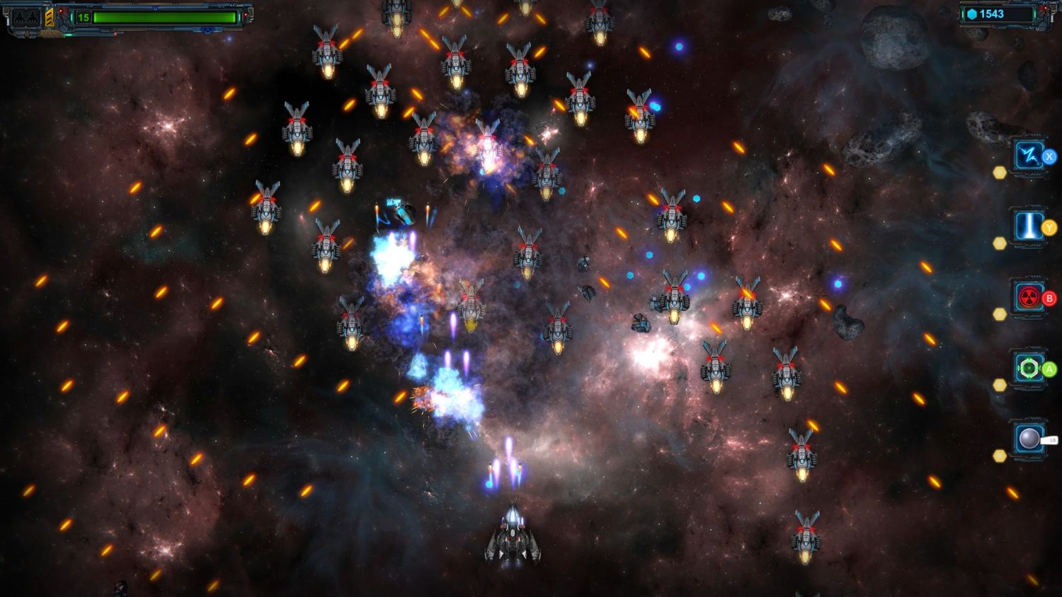 “/> Cuando los enemigos son derrotados, soltarán orbes azules que funcionan como Yo, la IA divisa. Entre misiones, el hangar se puede utilizar para mejorar las armas y armaduras actuales del barco, o incluso agregarle nuevos sistemas de armas. Actualizar el cañón principal y la armadura es una excelente manera de sobrevivir en las primeras misiones, pero los jugadores también deberán comprar las otras dos armas principales para combinar sus poderes y causar más daño a los enemigos. También hay armas secundarias como minas y un rayo láser que tienen munición limitada, pero que pueden causar enormes cantidades de daño.