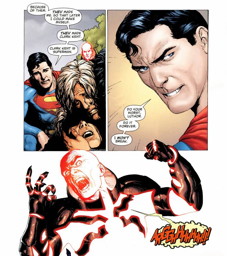 En un momento icónico, Superman mira a Lex Luthor y, como acaba de revivir algunos de los peores traumas que jamás haya experimentado, le dice a Lex que pase lo que pase, nunca se romperá. Es un momento fantástico que muestra que no importa lo que le pase a Superman, ningún villano podrá doblegarlo.