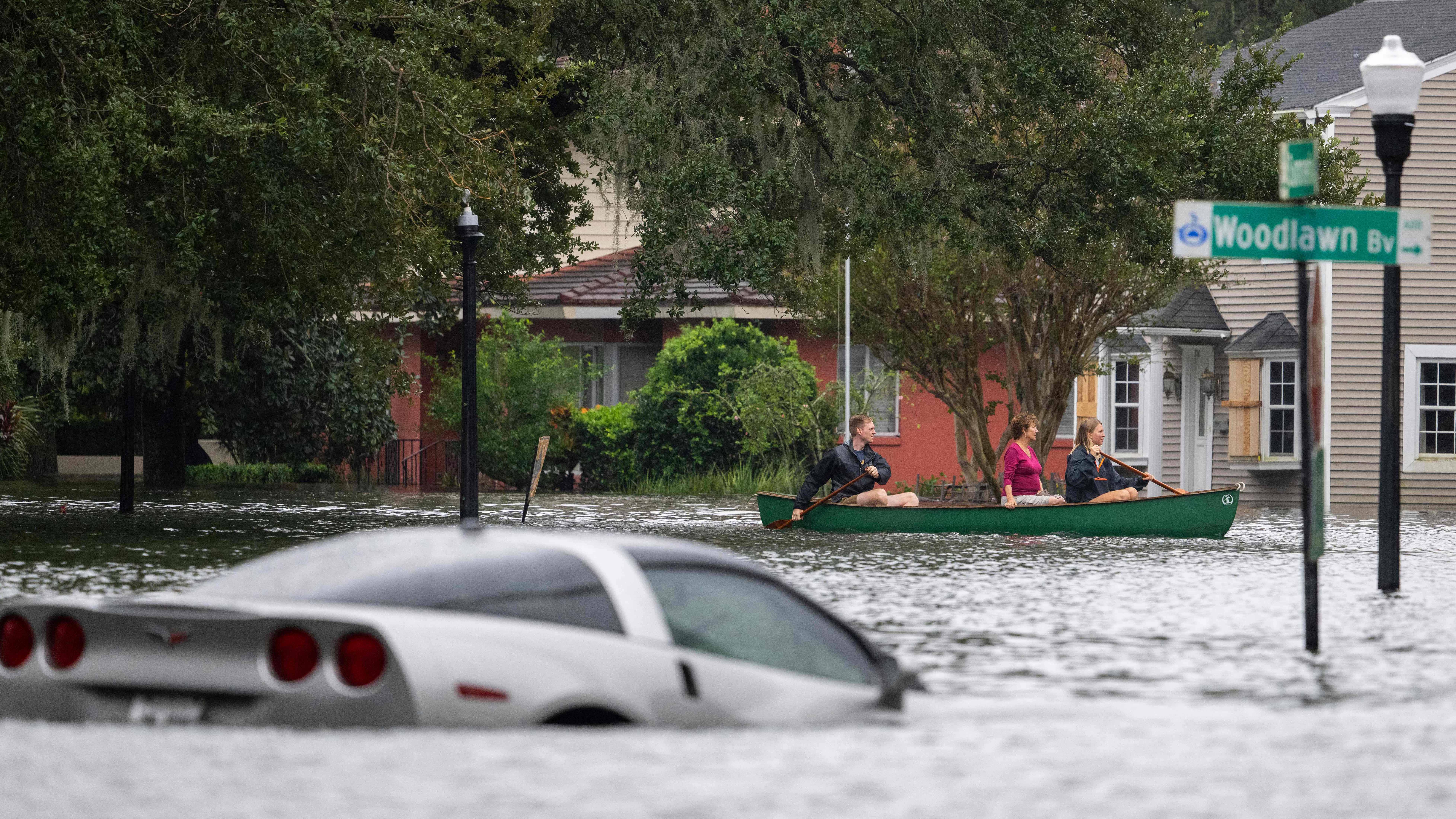 Bomberos en botes y soldados de la Guardia Nacional en un camión alto rescataron a Joseph Agboona y a sus vecinos después de que el agua llegara a las ventanas de su casa en Orlando.