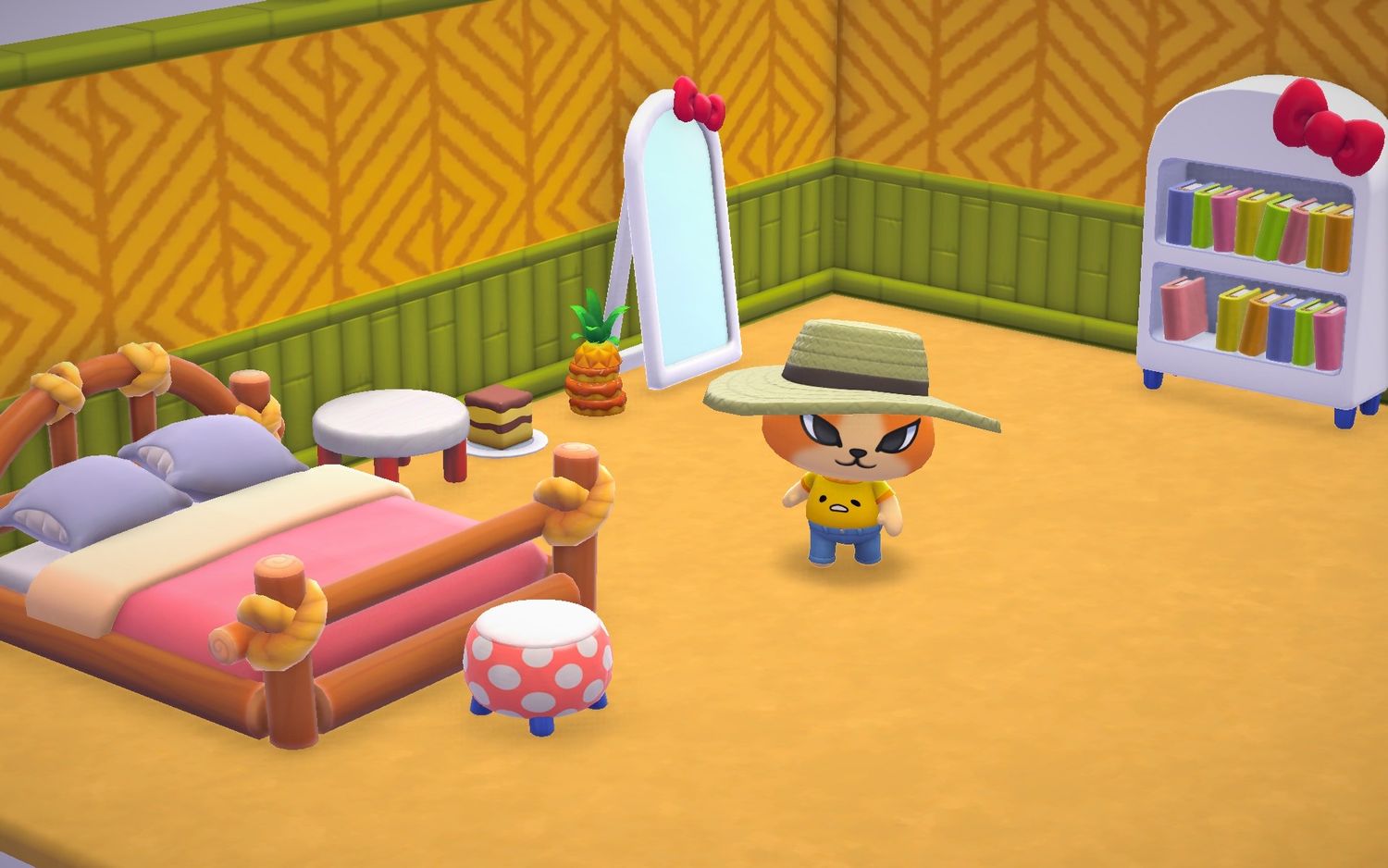 Además de los residentes permanentes de la isla, los jugadores también pueden atraer visitantes para que se alojen en las numerosas cabañas repartidas por todo el mundo. Esto funciona de manera similar a atraer a los aldeanos en Animal Crossing: Campamento de bolsillo, y cada huésped tiene requisitos específicos en lo que respecta a cosas como el mobiliario y la ubicación. Estas cabañas también son donde los jugadores pueden tener libertad creativa para decorar, ya que extrañamente no hay una residencia personal disponible. Arreglar estas cabañas y el parque temático en su conjunto a lo largo de la historia principal aumentará el Vibe Score de la isla, que My Melody realiza un seguimiento, aunque actualmente no está del todo claro qué significa aumentar esto.