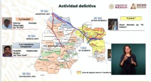 El titular de Sedena indicó que La Familia tiene presencia en la parte sur de la entidad y que los Caballeros Templarios operan al norte. No obstante, dijo que estos dos se aliaron para evitar que Guerreros Unidos tuviera influencia en el sur del Edomex.