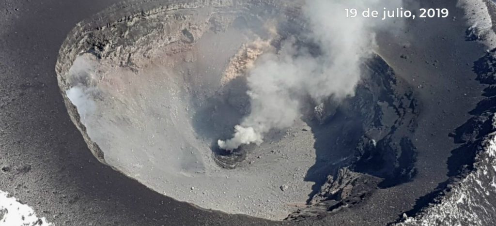 La CNPC señaló que con el objetivo de conocer el estado actual del cráter, el Centro Nacional de Prevención de Desastres (Cenapred) realizó un sobrevuelo de reconocimiento, con apoyo de Policía Federal, el pasado 19 de julio.