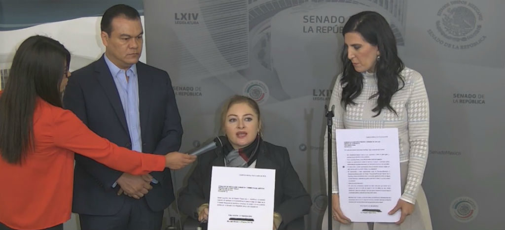 En conferencia de prensa los legisladores Kenia López Rabadán, del PAN; Claudia Anaya, del PRI; y Juan Zepeda, de Movimiento Ciudadano, informaron que lo anterior prueba que Piedra Ibarra mintió al Senado al firmar una carta donde protestaba decir la verdad al momento de iniciar el proceso de selección para dicho cargo.