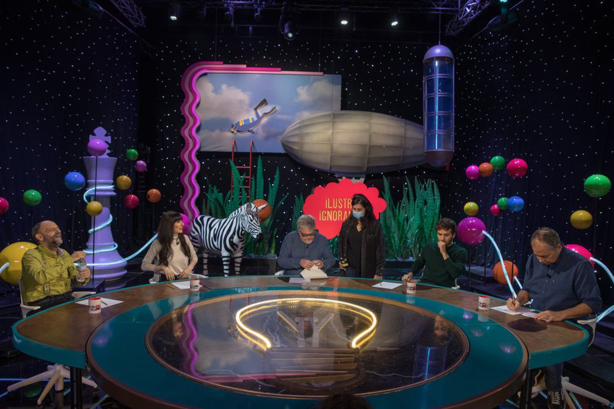 Faltan pocos minutos para el mediodía cuando se abren las puertas del teatro Nuevo Apolo en Madrid. Aunque los carteles anuncian al Mago Pop, el pasado miércoles 3 de noviembre era el turno del veteranísimo programa Ilustres ignorantes (martes a las 22.30 en #0 de Movistar+ y bajo demanda). Aquella fue una grabación excepcional por doble motivo: no es habitual que estas tertulias humorísticas se celebren por la mañana y, además, suponía el regreso de los ilustres a la que ha sido su casa durante los últimos seis años. Atrás ha quedado ya un confinamiento que les obligó, como a otros programas, a reinventarse para poder seguir adelante y grabar primero desde casa y, después, desde un plató sin público, donde los chistes rebotaban en la pared y solo estaban acompañados de las risas de los técnicos. Ahora, con aforo completo, las carcajadas vuelven a fluir en el patio de butacas.