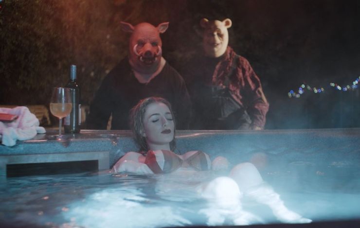 Ahora, Producciones de borde dentado han publicado imágenes (a través de Malditamente repugnante) de la próxima película de terror, y parece que la película imitará el estilo mumblegore de películas como Tú eres el próximo. Hay lugares domésticos con sangre garabateada en ellos, muchos rincones sombríos e incluso un par de máscaras aterradoras, que parecen ser sangre y mielLa interpretación del oso titular y su amigo Piglet. También parece que la película utilizará muchas imágenes impactantes, ya que una de las imágenes muestra a una mujer vestida con poca ropa relajándose en un jacuzzi mientras Pooh y Piglet se le acercan sigilosamente. Vea las imágenes a continuación: