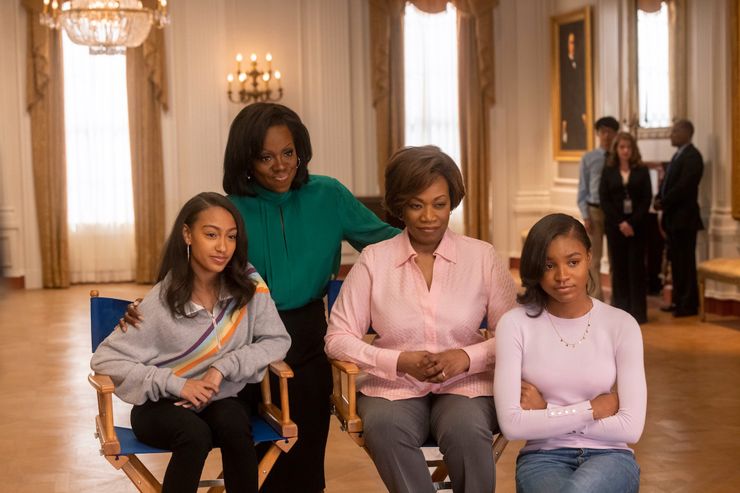 En Twitter, Tiempo de la funcion compartió tres imágenes preliminares que muestran varias de sus recreaciones de primeras damas a lo largo de los siglos. Eleanor Roosevelt de Anderson se representa en los años 30 durante lo que parece ser una escena de cena caliente. Luego, se muestra a los Ford (con Pfeiffer como Betty y Aaron Eckhart como Gerald) subiéndose a un automóvil en los años 70, interpretando el papel de una familia perfecta. Finalmente, en la década de 2000, se muestra a Michelle Obama de Viola Davis reunida con las mujeres de su familia. Echa un vistazo a las imágenes de tamaño completo a continuación: