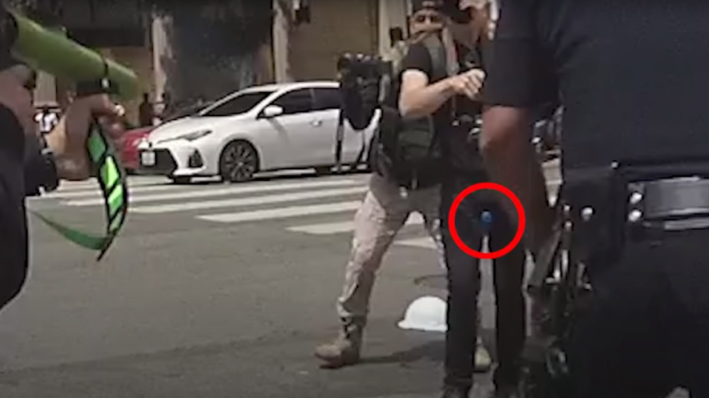 LOS ÁNGELES, California – Las autoridades de Los Ángeles informaron el sábado que están investigando un incidente de uso de la fuerza en el que un oficial disparó un proyectil recubierto de espuma en la ingle de un manifestante.