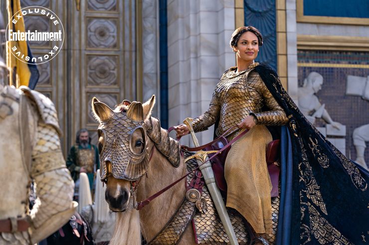 Nuevas imágenes de The Rings Of Power muestran a Galadriel en Númenor, un reino humano de la Segunda Edad que nunca antes se había representado en la pantalla.