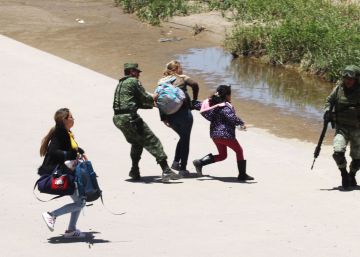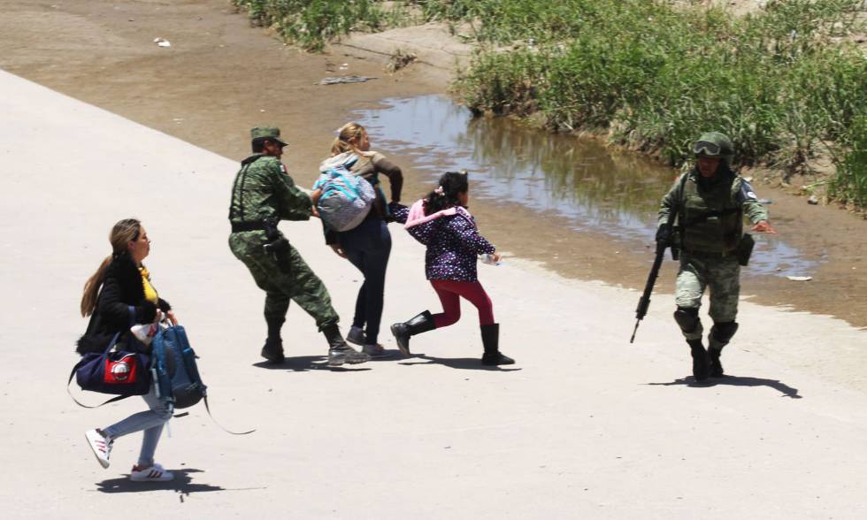 El domingo, el diario La Jornada reprodujo en portada la foto de AFP. Es de Hérika Martínez, Premio Nacional de Periodismo y habitante de Ciudad Juárez. Buscando explicaciones, encuentro una serie de seis fotografías : La secuencia colocada no parece corresponder a lo vivido. La primera es la ya vista en mayor lejanía. En la segunda, dos sujetos armados y uniformados corren hacia una mujer con una niña en brazos que avanza en el concretizado lecho de un río. La tercera nos regresa a la primera: las dos mujeres iniciales y la niña son escoltadas por sus captores. La cuarta continúa la acción con elementos no antes vistos: las mujeres iniciales están ya detenidas por un par de uniformados y uno más avanza solo al pantanoso cauce. La quinta muestra a un elemento deteniendo a una mujer y a la niña entrando al agua. En la última, la mujer y la niña son escoltadas por un elemento y detrás de ellos, como a cuatro pasos, otro guardia lleva a la otra de las primigenias aparecidas.