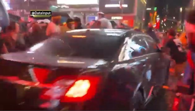 El video publicado en las redes sociales muestra el sedán negro Taurus corriendo por West 46th Street y tocando bocina, mientras manifestantes del movimiento Black Lives Matter se apartaban del camino. Nadie parecía estar gravemente herido.