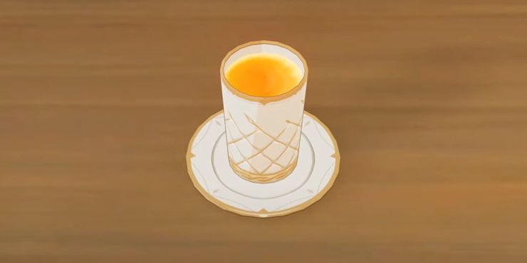 Similar a las recetas de café en el evento Of Drinking-a-Dream en Impacto Genshin, una de las recetas de jugo se desbloqueará a través de la progresión en la porción Tavern Tales. Después de servir a Kaeya y Rosaria, los jugadores pueden hablar con Dliuc para pedir su bebida. Diluc pide un Grey Valley Sunset, que desbloqueará la receta. Los ingredientes de las recetas que están desbloqueados se pueden ver en cualquier momento desde el menú de pausa.