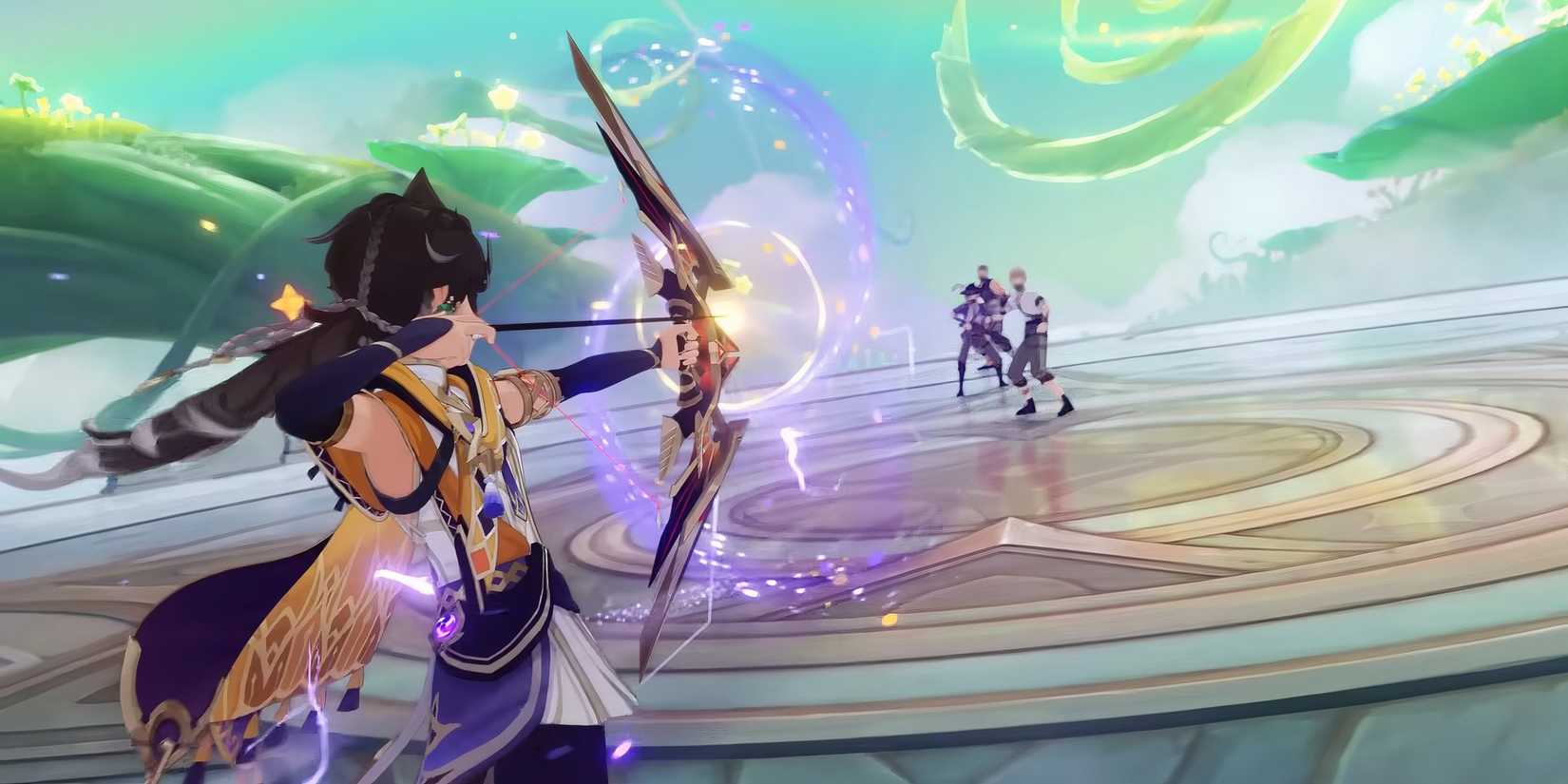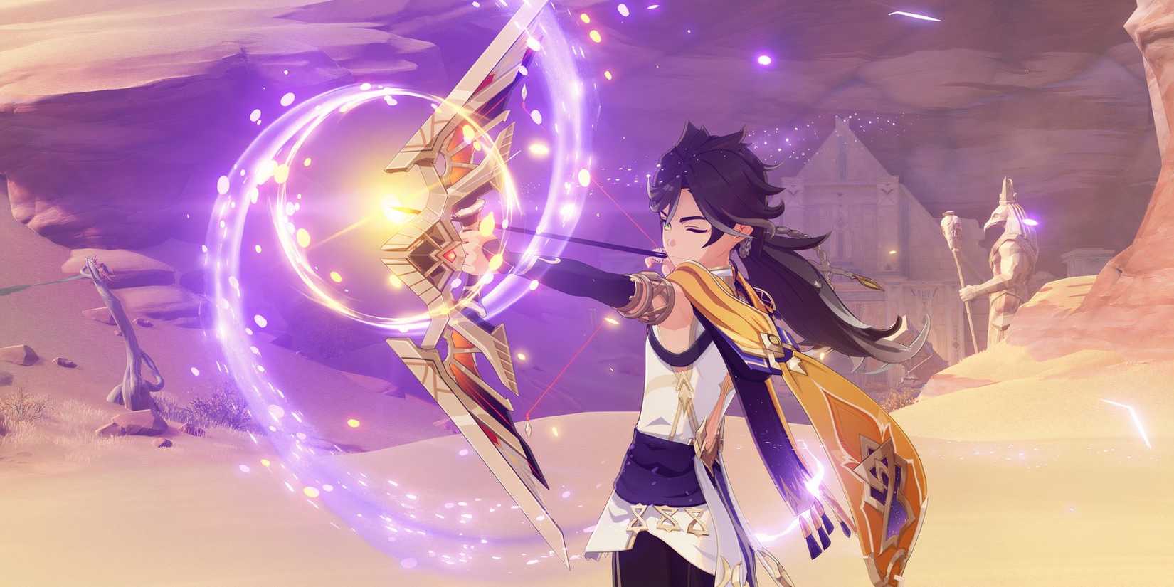Si bien Sethos, de hecho, escala el dominio elemental, es importante construirlo como un DPS tradicional y, como tal, encontrar arcos para él que aumenten el ATK, la tasa CRIT y el daño CRIT, pero que aumenten el daño de reacción elemental y, si es posible, Maestría Elemental. Vale la pena señalar que los arcos que potencian los ataques cargados también funcionan bien con el líder del Templo del Silencio. Como tal, el mejor arco para Sethos es Hunter’s PathEl arco de 5 estrellas característico de Tighnari.