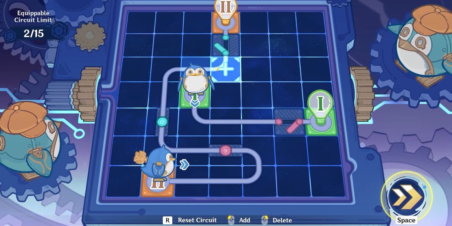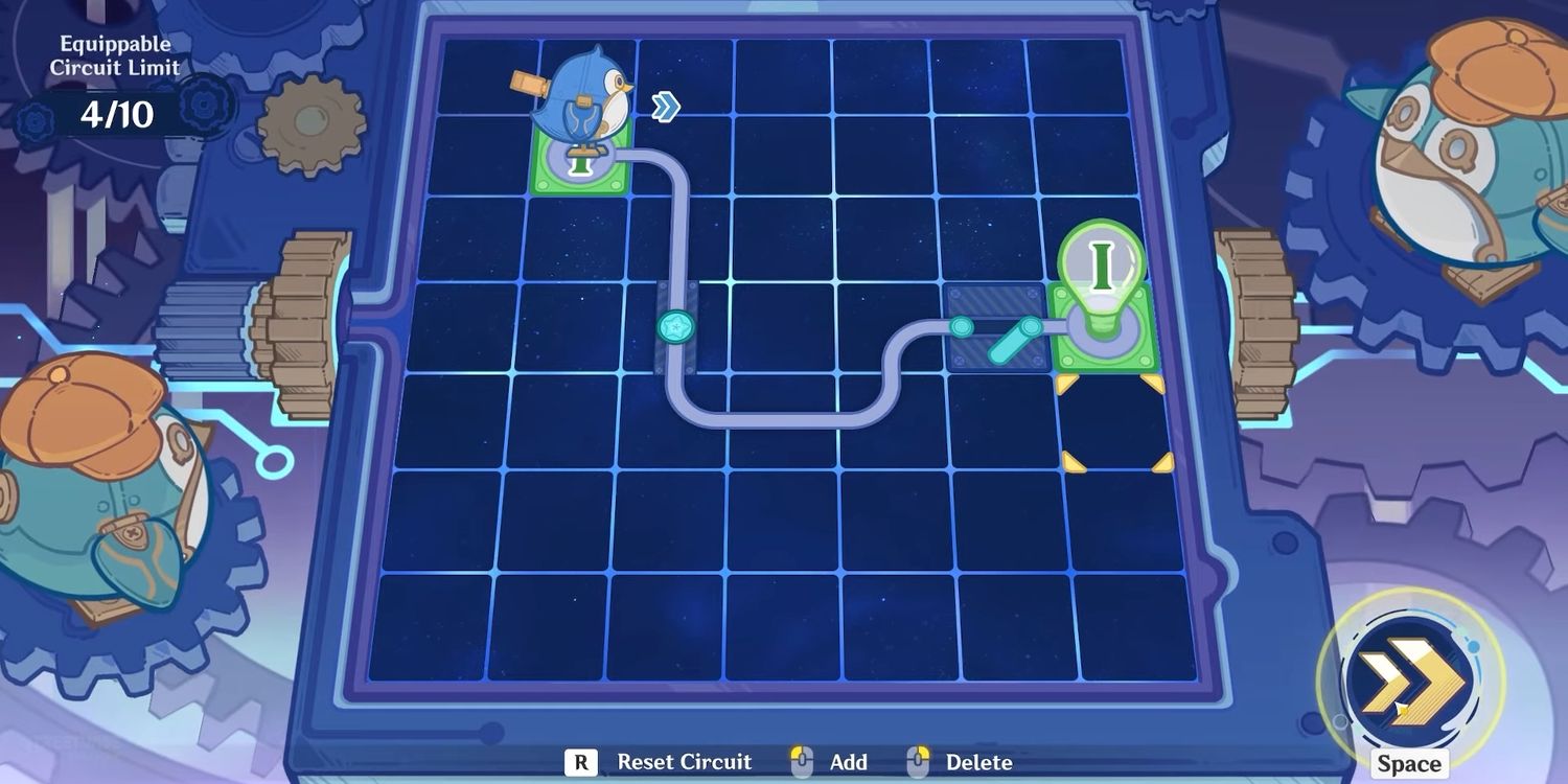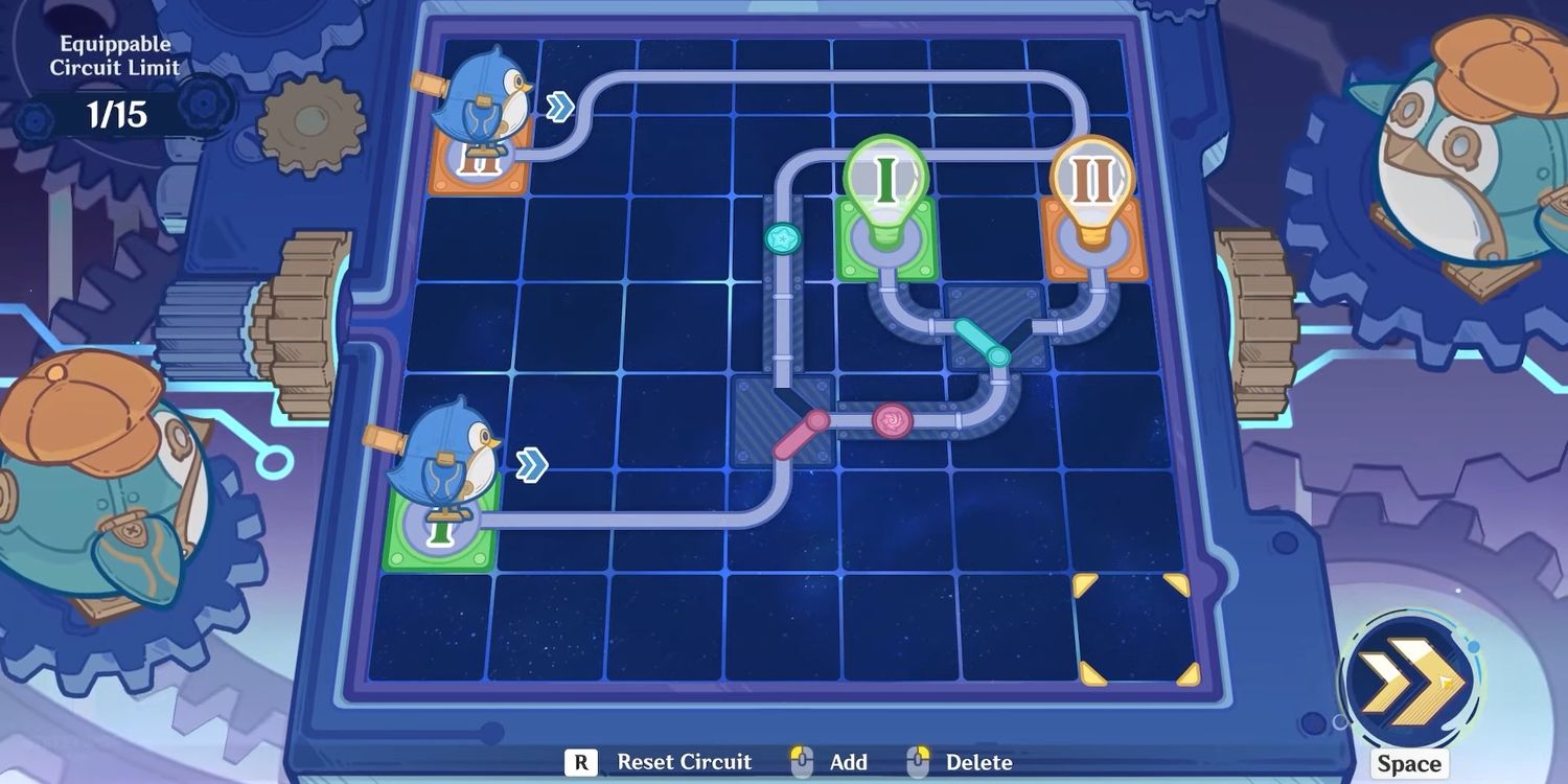 La primera etapa en el modo de evento Solución de problemas de la placa base en Impacto de Genshin se llama estructura básica del circuito. Aparte del que aparece en el modo campaña del evento para presentarte el modo de juego, este es, efectivamente, el rompecabezas más básico en la serie. Este es también el primer rompecabezas que le presenta el concepto de interruptores inductivos en el tablero.