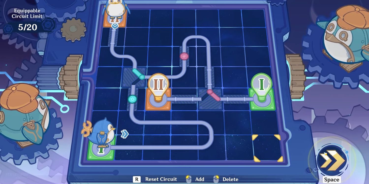 En la quinta etapa del modo Solución de problemas de la placa base, denominada Distribución eficiente de señal, se le presentará una nueva mecánica, en la que los interruptores inductivos no reparan exactamente las líneas del circuito, sino que alterar su dirección en Impacto de Genshin. Después de esto, a menudo verás los caminos compartidos de Thelxie antes de divergir.