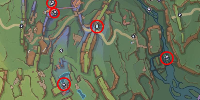 De hecho, algunos están en salientes más altos, algo alejados del río, pero todos siguen el camino. En el lado noreste del río, tendrás que subir a una zona más alta y allí encontrarás algunos hongos cuernos resplandecientes, aunque hay una leyenda local en Impacto de Genshinlo que podría obligarte a entrar en combate. Regresa a la pequeña isla en medio del río y avanza hacia el norte hasta una cueva. Cerca de la entrada, justo al lado del Teleport Waypoint, deberías encontrar tres hongos cuernos brillantes más.. Estos son todos los nodos cercanos a la tribu Maestros del Viento Nocturno.