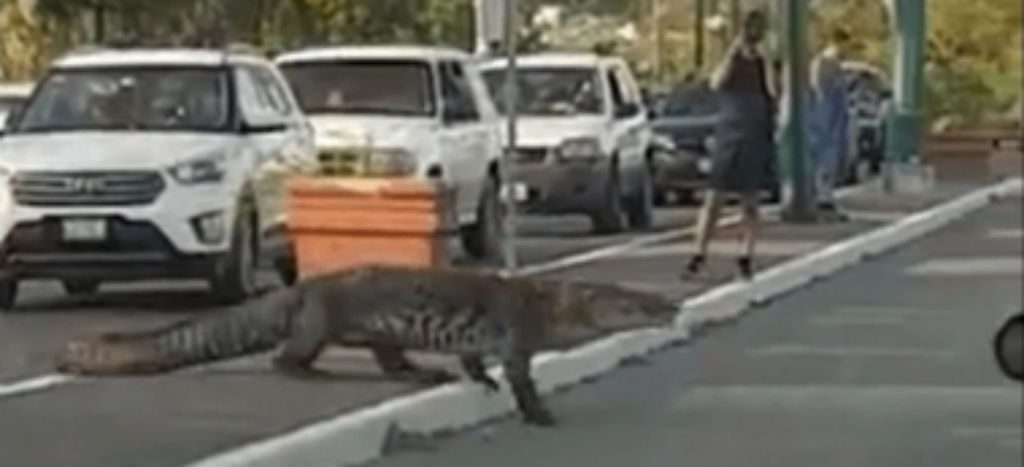 Un enorme cocodrilo que recién había salido de la Laguna del Carpintero, causó asombro entre peatones y automovilistas luego de que cruzara el bulevar y se quedara a descansar a medio camino en Tampico, Tamaulipas. Los hechos que dejaron a muchos boquiabiertos ocurrió a media mañana de este miércoles en el bulevar Fidel Velázquez, luego de que el animal de cerca de tres metros se saliera de la barda perimetral de la laguna. Los automovilistas que circulaban a esa hora parar su marcha para cederle el paso al enorme reptil que no conforme con llamar la atención de los peatones se quedó a descansar a medio camino, para segundos después emprender su recorrido. “Juancho”, como es conocido este enorme lagarto, fue capturado por elementos de Protección Civil quienes tras amarrarlo con unos mecates lo llevaron hasta la Laguna del Carpintero donde fue liberado y regresado sano y salvo a su hábitat natural.