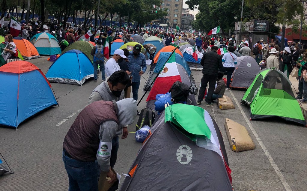 A través de las redes sociales internautas compartieron fotos y videos desde distintos puntos del segundo cuadrante de la capital, incluso algunos de los manifestantes optaron por colocar casas de campaña sobre avenida Juárez, a la altura del Hemiciclo a Juárez.
