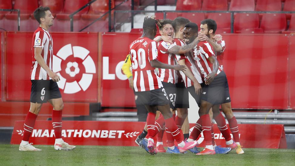 Iñaki Williams volvió a marcar fuera de San Mamés, el Athletic volvió a ganar a domicilio. Un trabajado triunfo, in extremis para colmo de males locales, que deja al Sevilla prácticamente fuera de la pugna por el título de Liga. Los leones, con muchas e importantes bajas en su once titular, se hicieron fuertes en defensa y aprovecharon una de sus contadas llegadas ante el marco rival. Lopetegui reclamó insistentemente un posible penalti por mano de Balenziaga con 0-0 en el marcador.