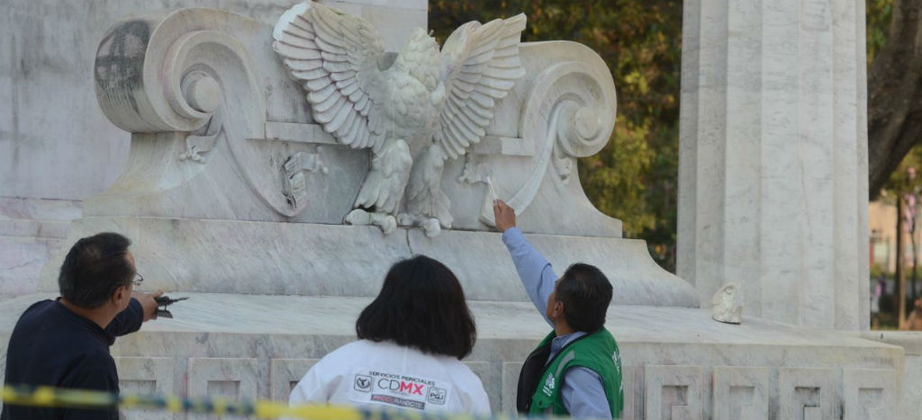 Luego de los hechos ocurridos en el Hemiciclo a Juárez en la madrugada de este 23 de febrero, cuando fue decapitada la águila central, la Secretaría de Cultura infirmó que ya se realizan los dictámenes técnicos para efectuar los trabajos de restauración.