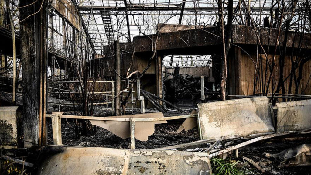“Es casi un milagro que Bally, una chimpancé de 40 años y Limbo, un macho más joven, sobrevivieran este infierno”, dijo Dressen. Agregó que muchos cuidadores de animales estaban impactados por la devastación.