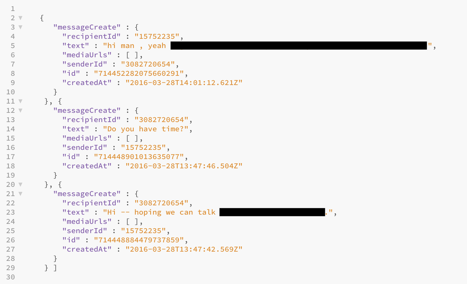 Saini encontró mensajes de años encontrados en un archivo de un archivo de sus datos obtenidos a través del sitio web de cuentas que ya no estaban en Twitter. También presentó un error similar, encontrado un año antes pero no divulgado hasta ahora, que le permitió usar una API desde obsoleta para recuperar mensajes directos incluso después de que se eliminara un mensaje tanto del remitente como del destinatario, sin embargo, el error no estaba No puede recuperar mensajes de cuentas suspendidas.