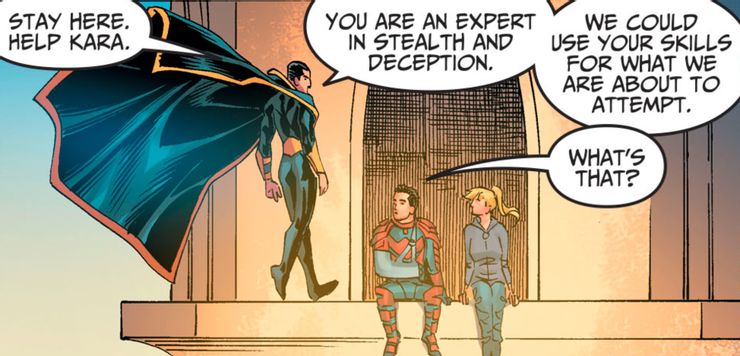 El reconocimiento de Black Adam de las habilidades de Damian es en realidad una admisión humillante para el gobernante, a quien a menudo se considera arrogante. Adam se esfuerza por ayudar a Supergirl a desarrollar sus poderes y encontrar su lugar en el mundo, pero las conversaciones realistas y la experiencia de campo de Damian ayudan a Kara a lograr un nivel de control que nunca antes había tenido. Black Adam ve que el joven puede hacer cosas que él no puede, por lo que reclutar a Damian se convierte en una obviedad para el líder de Kahndaq.