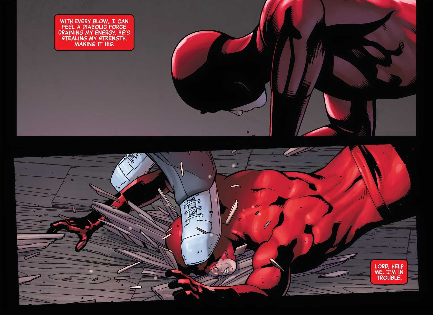 Daredevil y Kingpin se han enfrentado en numerosas ocasiones. Aunque Fisk puede ser un oponente bastante intimidante, no tiene ni la mitad del entrenamiento ni la experiencia de combate que Matt, lo que normalmente le da ventaja a Daredevil. Desafortunadamente, estar bajo la posesión de Greed ha amplificado la fuerza y la velocidad de Fisk. El héroe, normalmente ágil, no le asesta un golpe a Fisk y Kingpin acaba con Matt como si no fuera nada. Daredevil ha tenido sus problemas con sus aliados poseídos, pero ninguno de ellos ha sido tan peligroso ni tan efectivo como Fisk, influenciado por Greed. Si Daredevil no tiene cuidado, Este Kingpin increíblemente mejorado podría terminar apoderándose de Hell’s Kitchen.