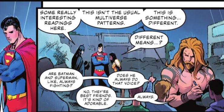 En el último número de La Liga de la Justicia, Aquaman confirma hilarantemente que Superman y Batman son en realidad mejores amigos que rara vez pelean.