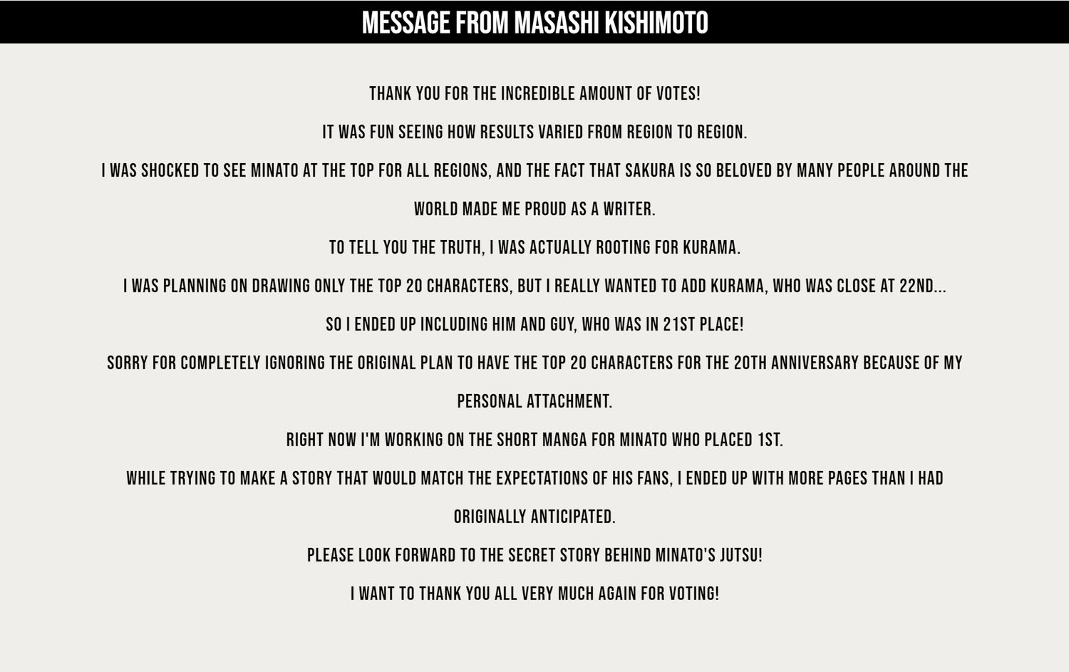 La encuesta de Narutop99 pidió a los fanáticos que votaran por sus personajes favoritos. Sin embargo, el hecho de que Kishimoto escribiera y dibujara el ganador fue un factor importante en las decisiones de muchos votantes. A cada persona se le permitió emitir un voto por día para ayudar a elegir un ganador, y los resultados se contaron en todo el mundo. El hecho de que se emitieran más de 4,6 millones de votos causó una gran impresión en el naruto creador. Sin embargo, a pesar de todas las cosas negativas que pudo haber escuchado sobre el personaje a lo largo de los años, naruto el mangaka Masashi Kishimoto ahora sabe que sakura es un personaje del que puede estar orgulloso de haber creado.