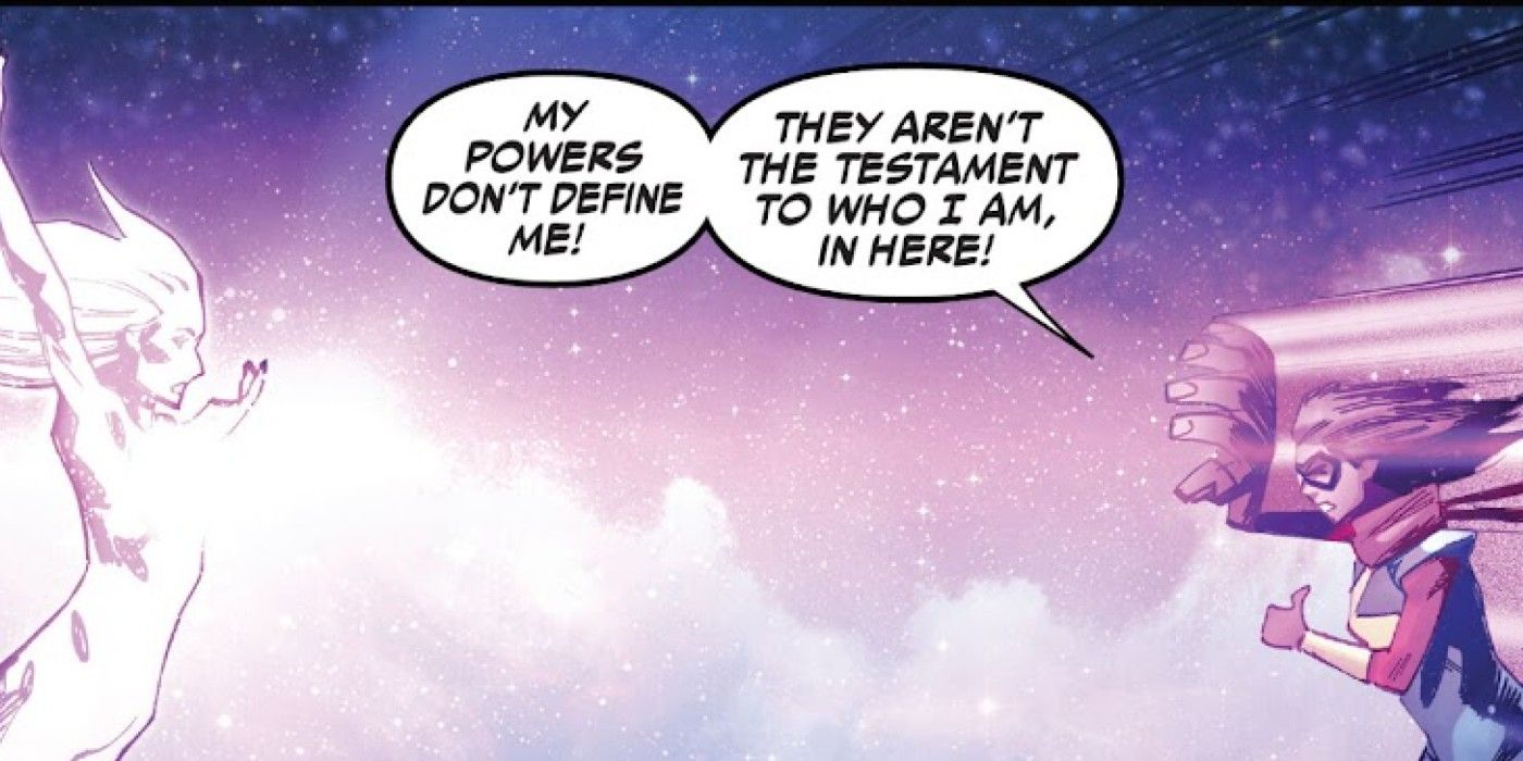 “/> Estas líneas casi se leen como una respuesta directa a los fanáticos que estaban preocupados de que convertirse en mutante cambiaría al personaje de Ms. Marvel en su conjunto. A decir verdad, gran parte de la serie parece haber servido como una respuesta a esas mismas críticas, especialmente en el último número donde pontifica sobre cómo su condición de mutante es un símbolo del nuevo papel que la Sra. Marvel ha asumido dentro del Universo Marvel. Si ese es el caso, entonces vale la pena decir que el intento del equipo creativo de responder a las críticas no se considera malicioso o un intento de atacar a los fanáticos.