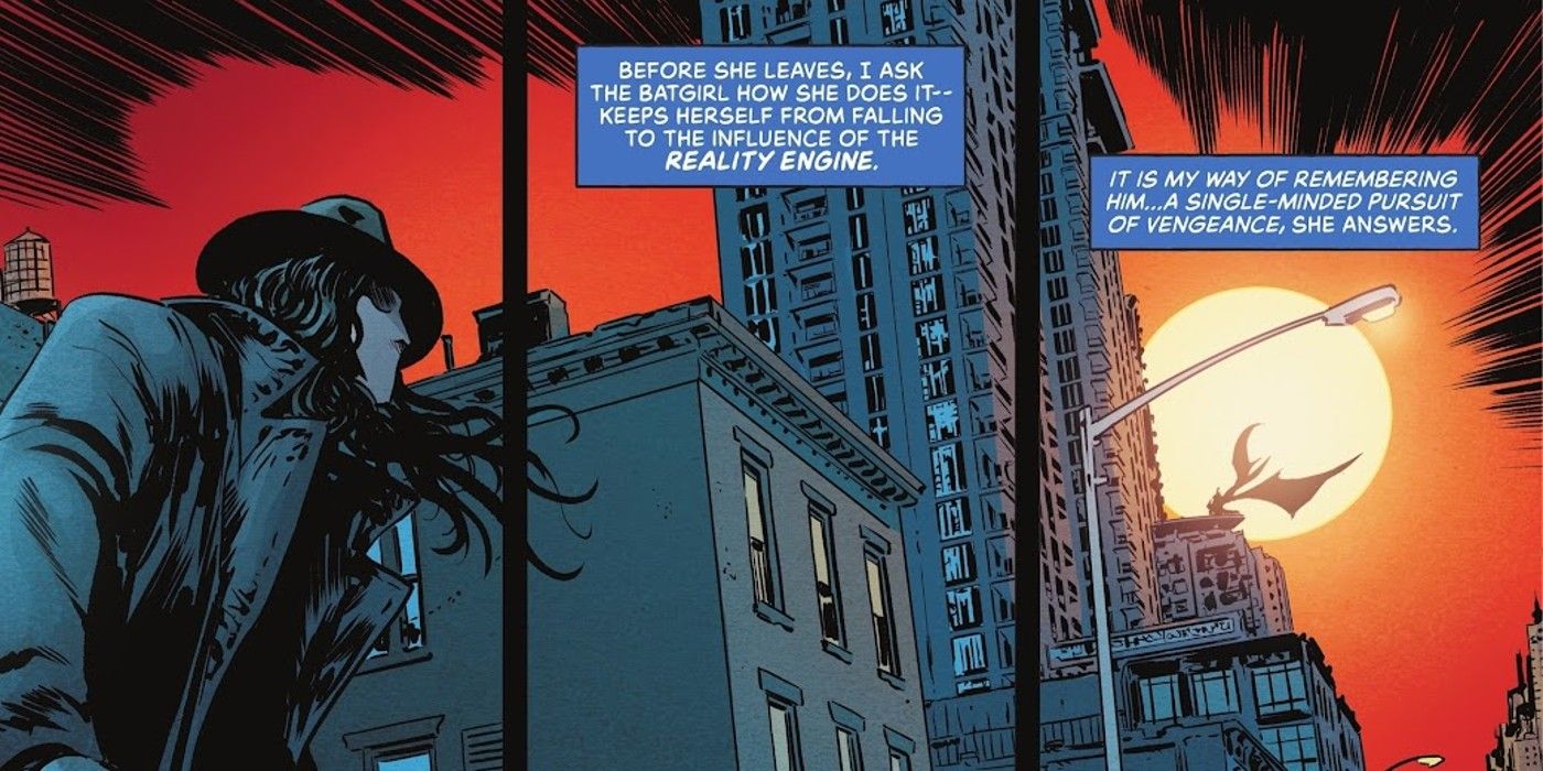 Cass simplemente adopta el código moral de Batman para guiar una furiosa venganza que siempre ha tenido, pero llevar su código le permite mantener viva su memoria. Ese recuerdo permanece vivo en su mente y a través del miedo que transmite en las calles.