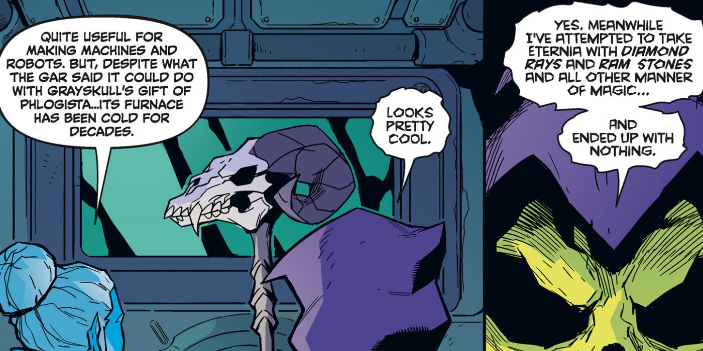 “/> Y ahora que Skeletor se encuentra cara a cara con el poder real en la forma de Phlogista, finalmente se da cuenta de esto. Si Skeletor obtiene el Phlogista y aprovecha su poder, entonces el Rayo de Diamante y la Piedra de Carnero parecerán baratijas. Con tal poder a su disposición, sería imparable. Quizás la única gracia salvadora para Eternia es que Phlogista es un artefacto eterniano, lo que significa que Skeletor puede tener problemas para usarlo, tal como lo hizo con Diamond Ray. Sin embargo, como se ve en este número, potencia esqueletolo que significa que por fin pudo haber encontrado un plan para derrotar He-Man y los Amos del Universo.