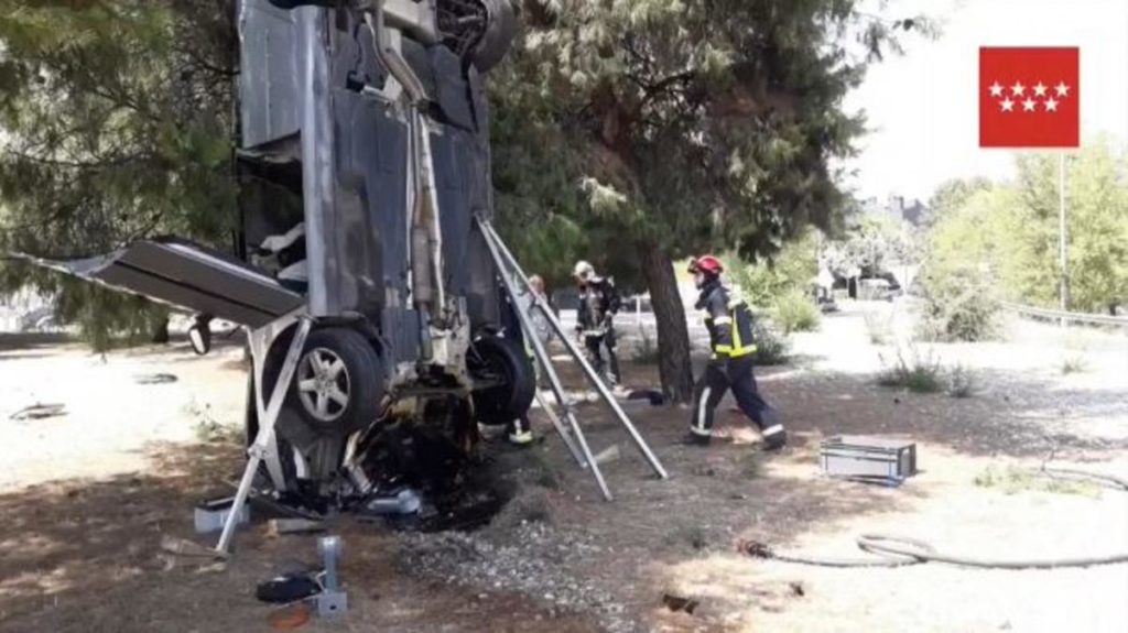 Para liberarla ha sido necesaria la actuación de los Bomberos de la Comunidad de Madrid, que han tenido que estabilizar el vehículo y apuntalarlo.