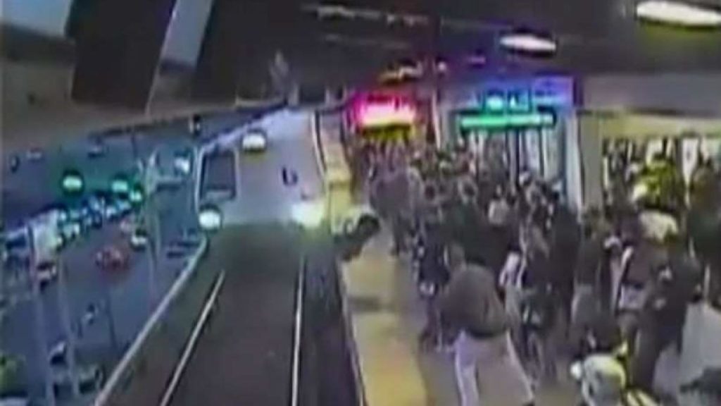 El video de vigilancia publicado por BART mostró a O’Connor, que estaba parado a unos pies de distancia en la plataforma, sujetando al hombre y poniéndolo a salvo justo cuando el tren los pasaba.