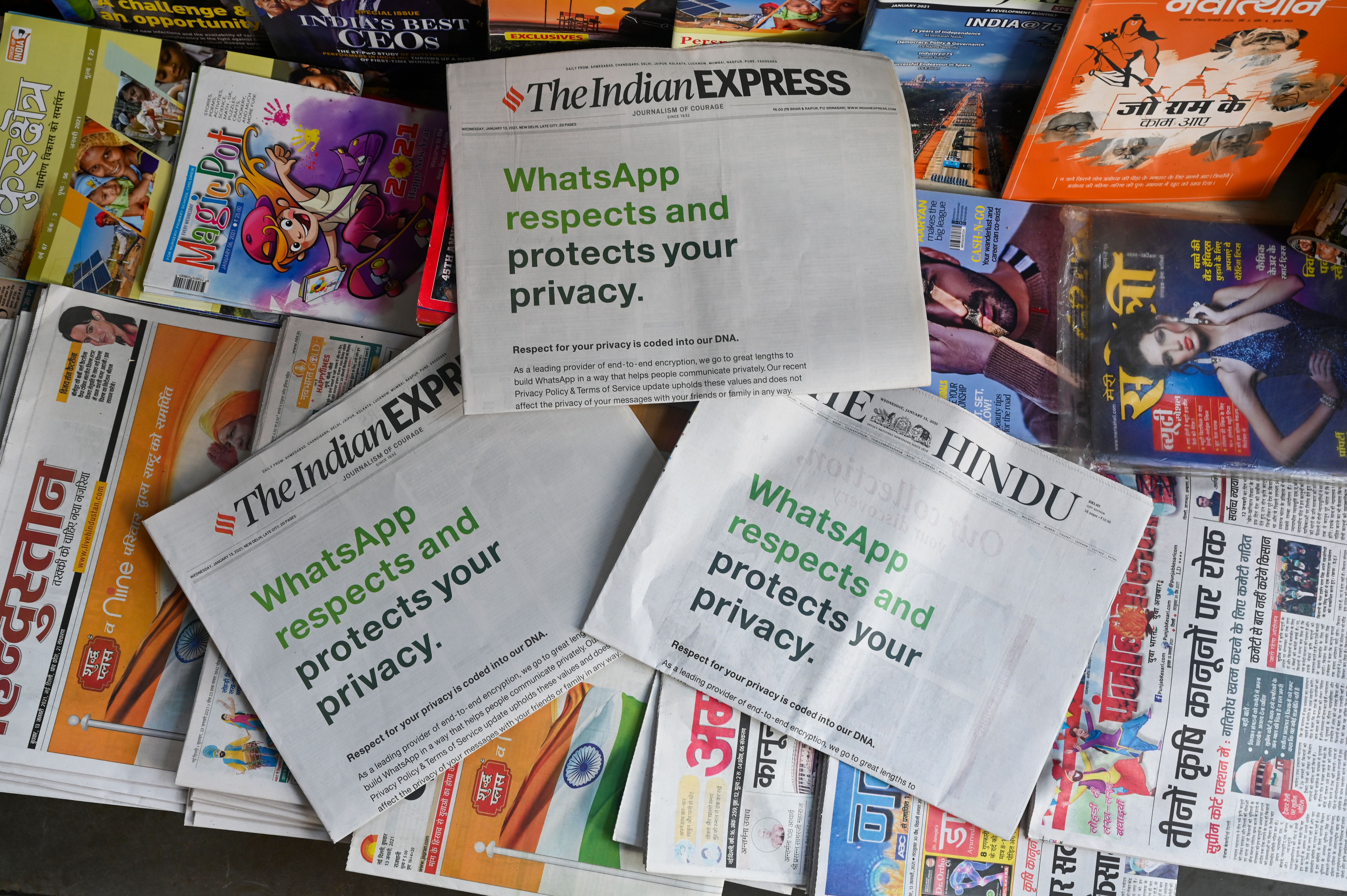 WhatsApp también publicó anuncios de primera plana en varios periódicos de la India, donde acumuló más de 450 millones de usuarios, la semana pasada para explicar los cambios y desacreditar algunos rumores.