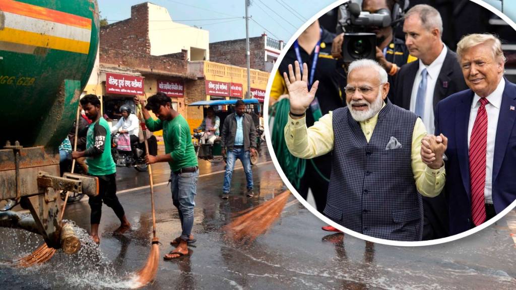 AHMEDABAD, India — La ciudad de Ahmedabad estaba llena de actividad este domingo mientras los trabajadores limpiaban carreteras, plantaban flores y levantaban cientos de carteles con la foto del presidente Donald Trump, un día antes de su visita inaugural de dos días a India después de que el primer ministro Narendra Modi le prometiera una bulliciosa recepción pública.