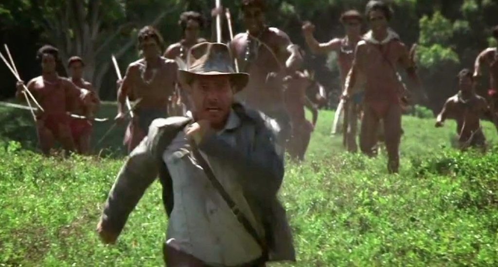 Un buen ejemplo de esto en En busca del arca perdida es el prólogo donde Indy roba un ídolo de una tribu indígena porque su museo probablemente necesitaba una nueva atracción. Incluso el Arca de la Alianza no se salvó, que al final solo está escondida en algún lugar del Área 51 a pesar de ser una súper arma bíblica literal.