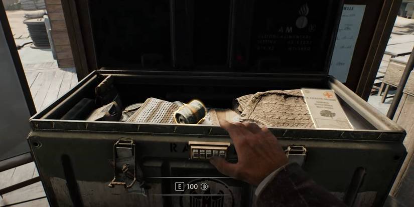 El documento de envío que inicia el Misterio afirma que se ha enviado un envío clasificado a los fascistas. Este envío se puede ver frente al escritorio, donde se puede investigar una gran caja de seguridad verde. Tu objetivo para completar el Misterio es encontrar el código que abre esta caja de seguridad. usando pistas que puedes encontrar en el campamento.