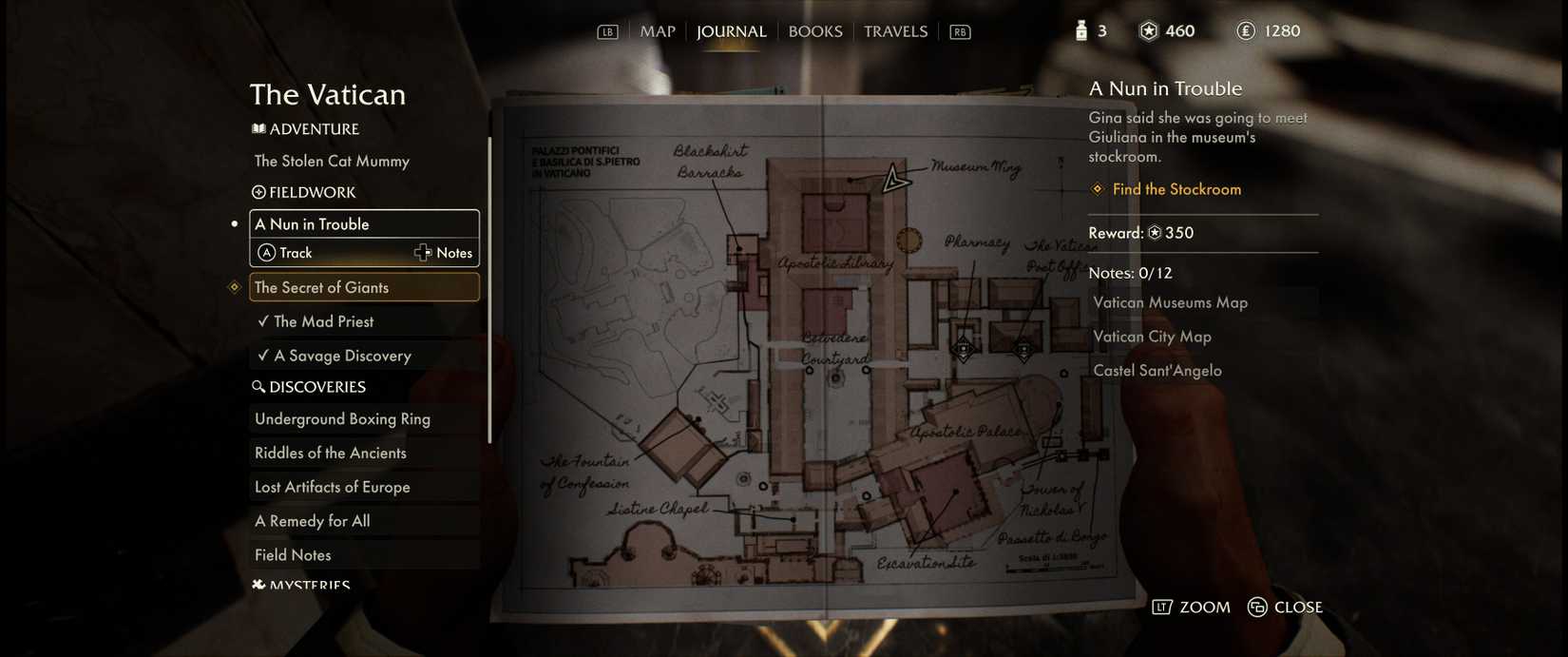 Las diversas prerrogativas del juego están todas unidas a través del Diario, una característica que va mucho más allá que en Inexplorado. Misiones, instantáneas, objetos coleccionables y más están organizados en un elemento físico que Indy hojea.parte de una iniciativa general para hacer que el juego se ciña a elementos diegéticos tanto como sea posible. La forma en que el juego estructura las tareas evita los peores aspectos de las listas de verificación de contenido lateral repetitivas y, ocasionalmente, toparse con demasiadas puertas cerradas desde el otro lado es un pequeño precio a pagar.