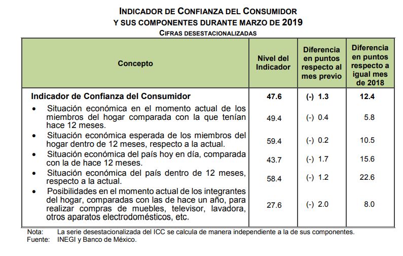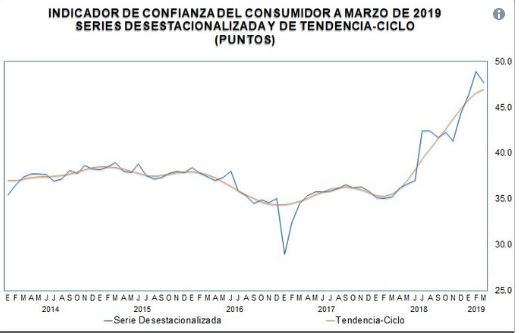 En marzo de 2019, el Índice de Confianza del Consumidor (ICC) registró una reducción mensual de 1.3 por ciento con datos ajustados por estacionalidad, informó el Instituto Nacional de Estadística y Geografía (Inegi).